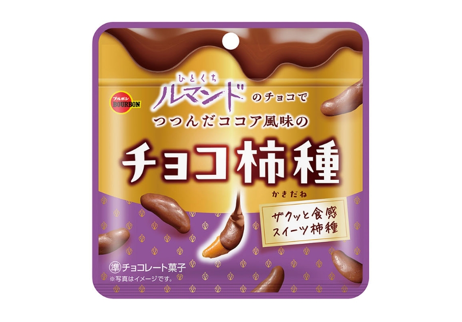 ココア風味のチョコの甘みと柿種の塩味による甘じょっぱさと、柿種ならではのザクッとした食感が楽しめる。