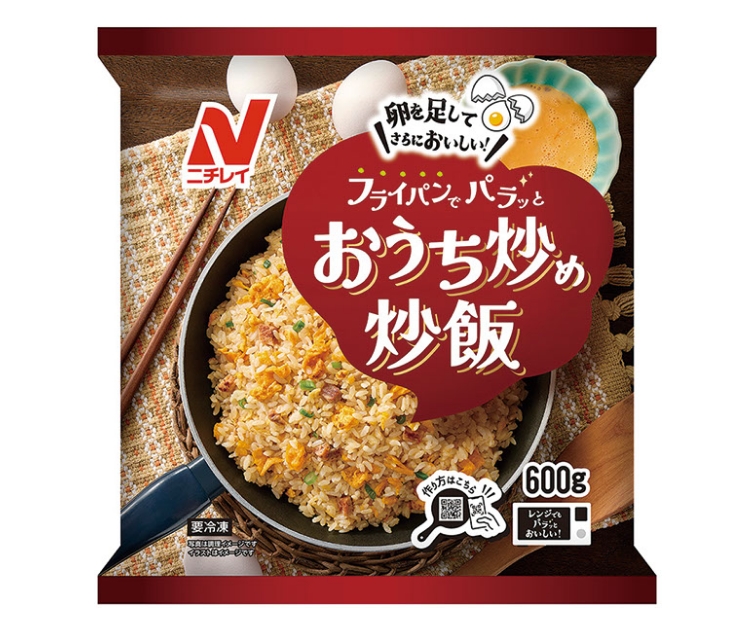 フライパンを熱して油を引き、卵を入れ半熟状に炒めたら、冷凍のままの本品を加え、火が通ったら出来上がり。本品には卵はすでに入っており、卵を入れて調理しなくても、もちろんそのままでもおいしく食べられる。